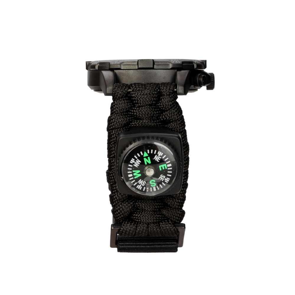 - Case terbuat dari bahan IP black plating alloy, serta strap dari material paracord