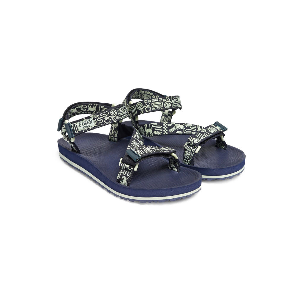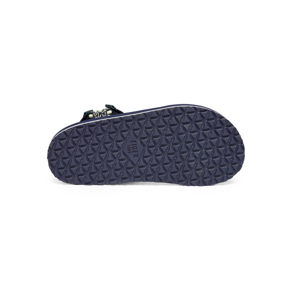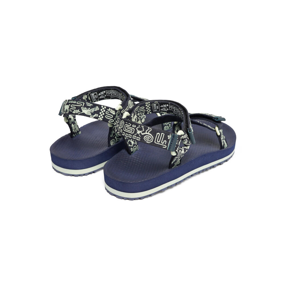 • Webbing strap sandal terbuat dari bahan poliester dengan detail hook dan loop pada bagian medial, vamp, dan toe sandal